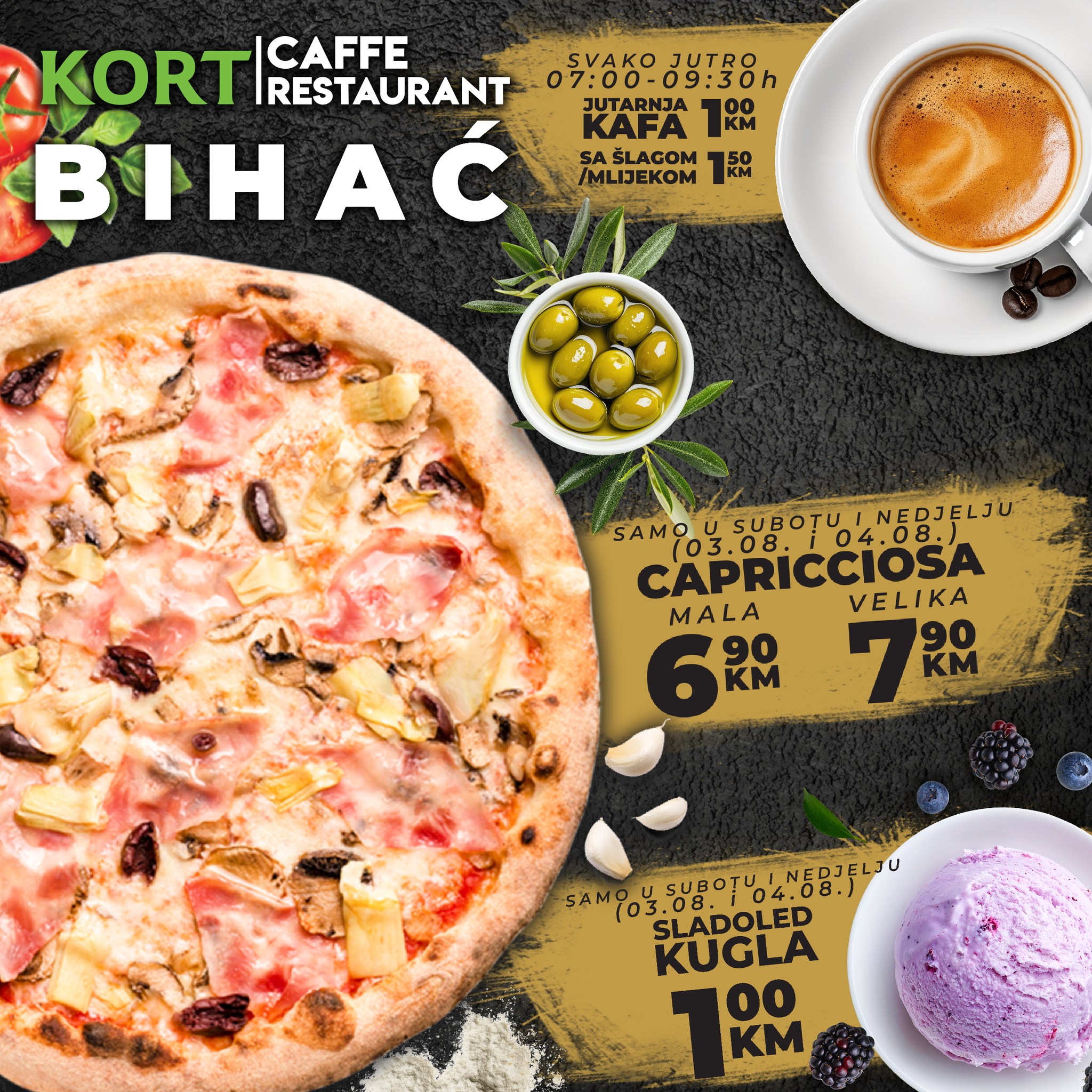 Uživajte uz jutarnju kaficu u našem caffe restoranu, za samo 1,00KM, a za vikend počastite sebe i svoje najdraže vrhunskom capricciosom i na kraju dan zasladite vrhunskim #Gelati sladoledom!