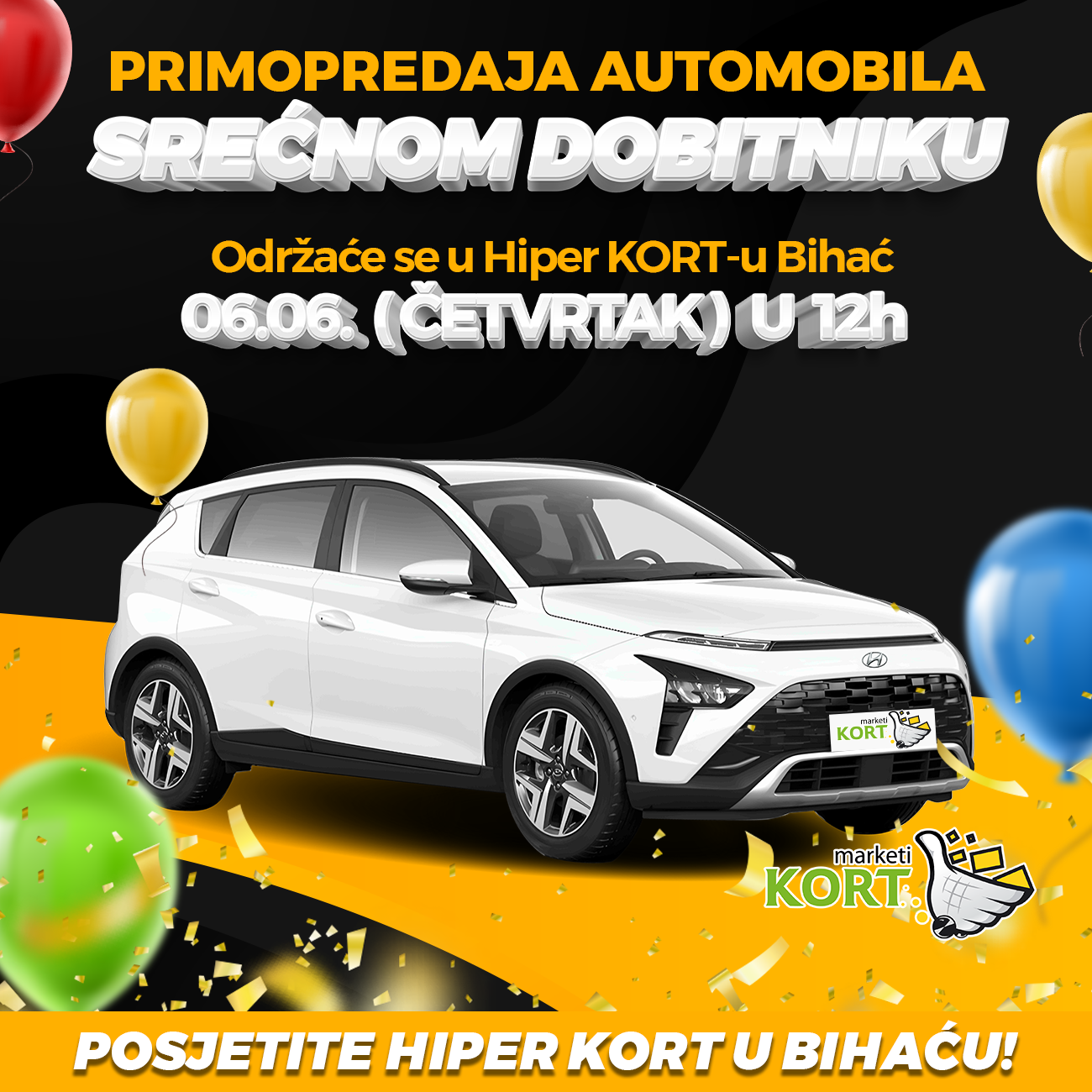 dobitnici Lejli Ovčini, koja je automobil osvojila na izvlačenju nagradne igre u Hiper KORTu u Bihaću, biće održana u četvrtak, 06.06. od 12 časova ispred Hiper KORTa u Bihaću.